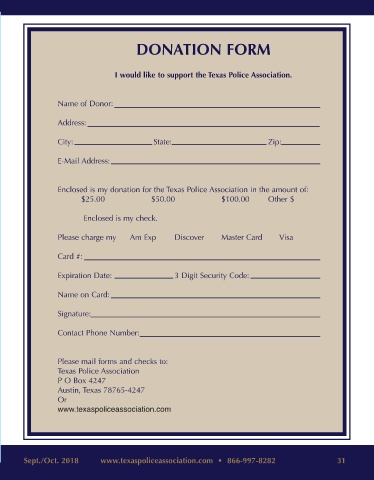 Enclosed is my donation for the Texas Police Association in the amount of: