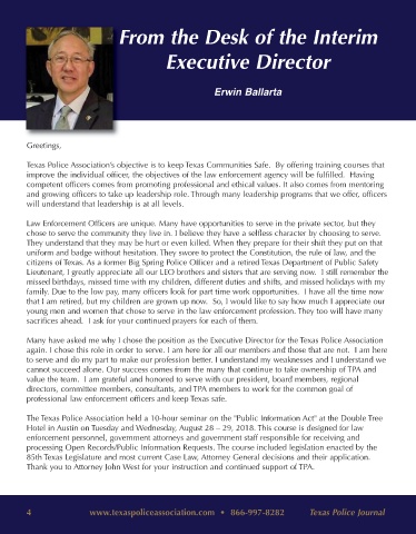 4 www.texaspoliceassociation.com • 866-997-8282 Texas Police Journal