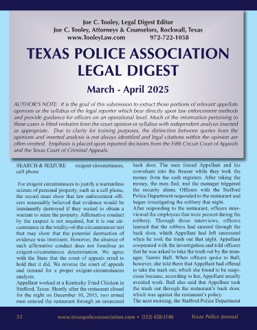 22 www.texaspoliceassociation.com • (512) 458-3140 Texas Police Journal