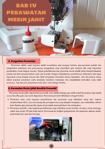B. Perawatan Mesin Jahit Bersifat Preventif