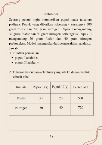 Jumlah Pupuk I (x) Pupuk II (y) Persediaan