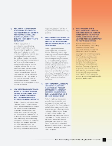 has been evolving and IN SKINCARE, TO MEET THE Q. HOW DOES REVLON BALANCE THE YEARS, AND HOW HAS REVLON