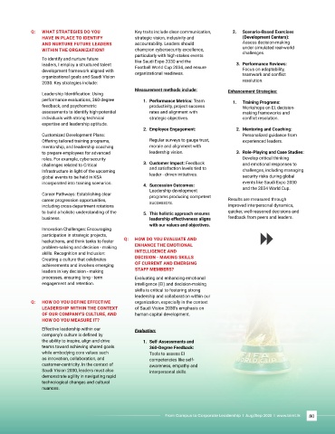 SAUDI VISION 2030 AND ITS Additionally, we retain top talent by Q: WHAT IS YOUR LEADERSHIP mentorship, and leadership coaching morale and alignment with 3. Role-Playing and Case Studies: