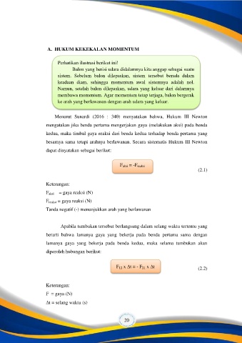 membawa momentum. Agar momentum tetap terjaga, balon bergerak