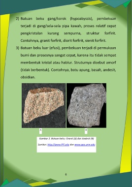Gambar 2. Batuan beku: Granit (A) dan Andesit (B)
