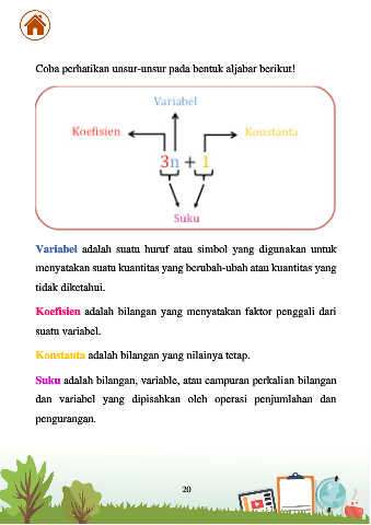 Coba perhatikan unsur-unsur pada bentuk aljabar berikut!