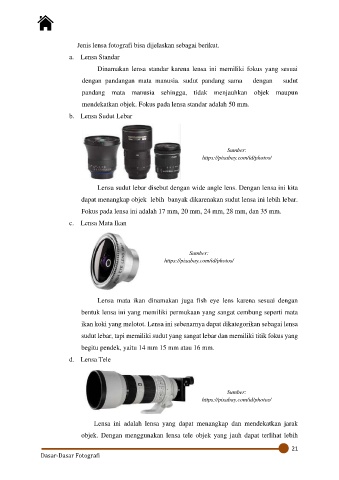 Jenis lensa fotografi bisa dijelaskan sebagai berikut.