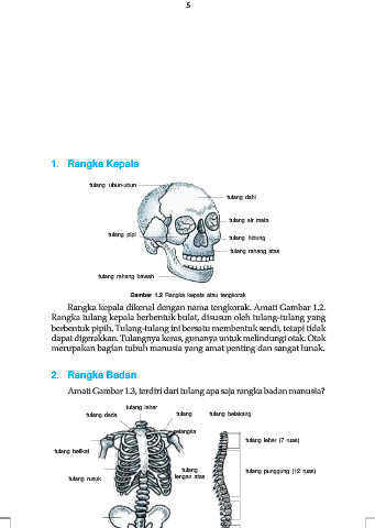 Rangka kepala dikenal dengan nama tengkorak. Amati Gambar 1.2.