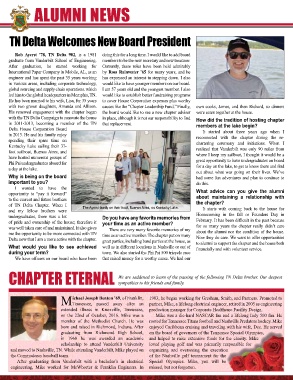 International Paper Company in Mobile, AL, as an by Ross Rainwater ’65 for many years, and he How did the tradition of hosting chapter