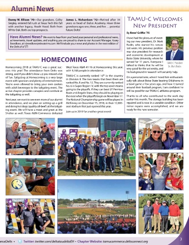 Homecoming 2018 at TAMU-C was a great suc- West Texas A&M 41-16 at Homecoming this year, very good for the university, and Dr. Mark Rudin