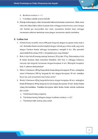 d.  Koefisien restitusi    = 1