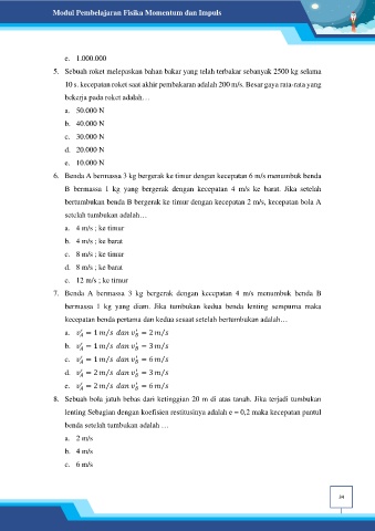 6. Benda A bermassa 3 kg bergerak ke timur dengan kecepatan 6 m/s menumbuk benda