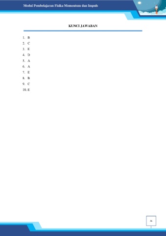 Modul Pembelajaran Fisika Momentum dan Impuls KUNCI JAWABAN 1. B 2. C 3. E 4. D 5. A 6. A 7. E 8. B 9. C 10. E 36