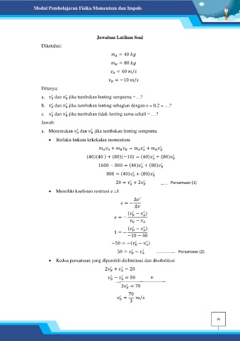 a.  Menentukan     dan     jika tumbukan lenting sempurna