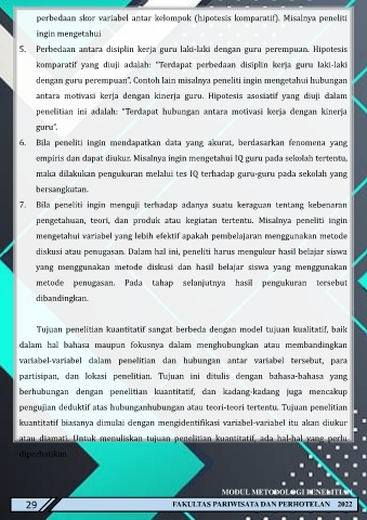 perbedaan skor variabel antar kelompok (hipotesis komparatif). Misalnya peneliti