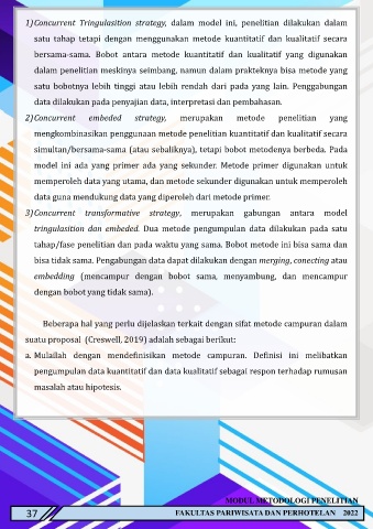 1)Concurrent Tringulasition strategy, dalam model ini, penelitian dilakukan dalam