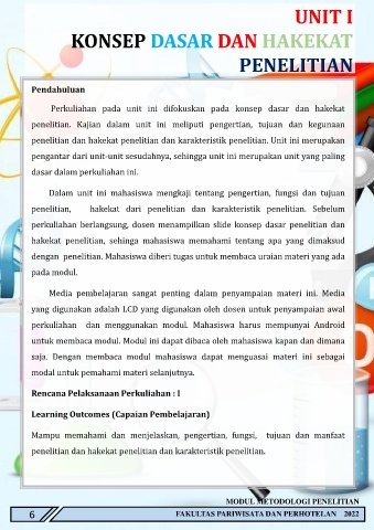 penelitian dan hakekat penelitian dan karakteristik penelitian. Unit ini merupakan