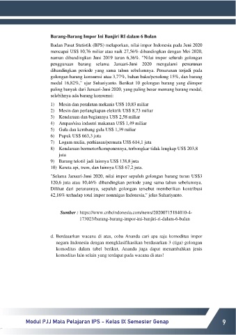 d. Berdasarkan wacana di atas, coba Ananda cari apa saja komoditas impor