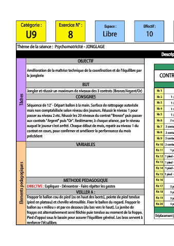 auquel le joueur s'est arrêté. Chaque début de mois, repatir au niveau 1 du Nx 7 2 contacts pieds (2 fois de suite) Nx 7 1 droit + 1 gauche (2 fois de suite) Nx 7 10 pieds alternés (2 fois)