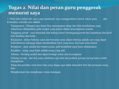 1. Nilai-nilai dalam diri saya yang membantu saya menggerakkan murid, rekan guru, dan