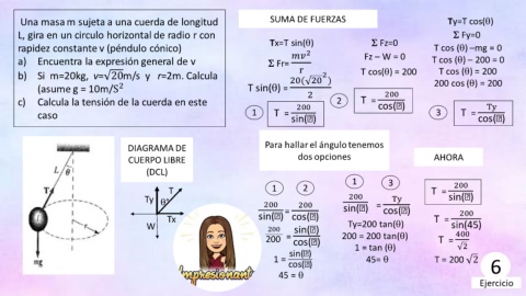 c) Calcula la tensión de la cuerda en este 200 2 T = cos( ) Ty