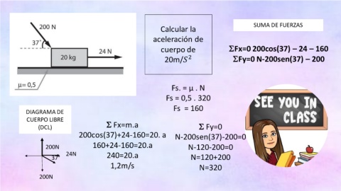 200cos(37)+24-160=20. a N-200sen(37)-200=0