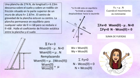 descansa sobre el suelo y sobre un rodillo sin *si >=68 esta en equilibrio Fs. = µ . N