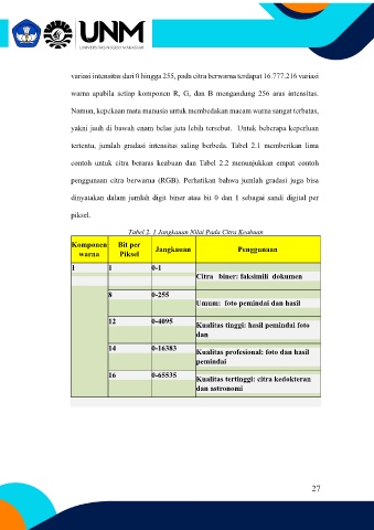 tertentu, jumlah gradasi intensitas saling berbeda. Tabel 2.1 memberikan lima