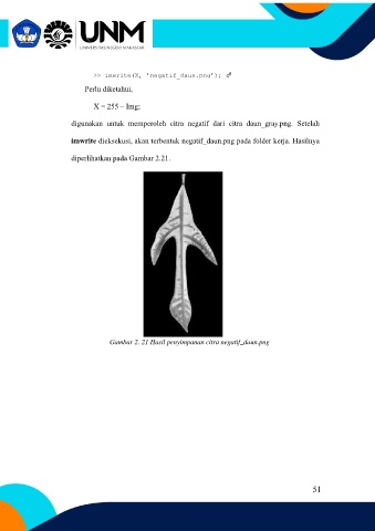 digunakan untuk memperoleh citra negatif dari citra daun_gray.png. Setelah