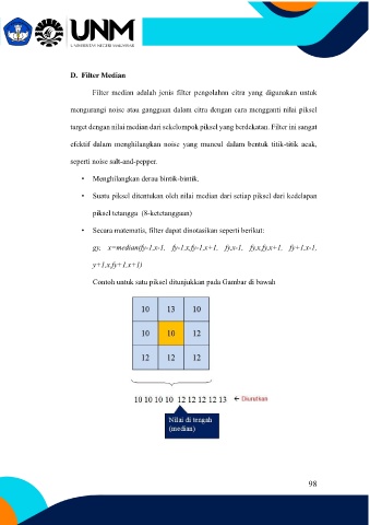 target dengan nilai median dari sekelompok piksel yang berdekatan. Filter ini sangat
