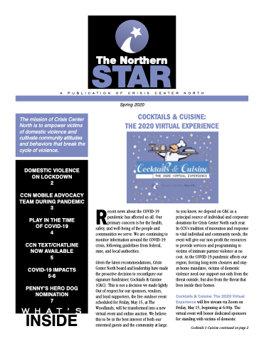 As you know, we depend on C&C as a principal source of individual and corporate donations for Crisis Center North each year. In CCN’s tradition of innovation and response to vital individual and community needs, the event will give our non-profit the resources to provide services and programming to victims of intimate partner violence at no cost. As the COVID-19 pandemic affects our region, forcing long-term closures and stay- at-home mandates, victims of domestic violence need our support not only from the threat outside, but also from the threat that lives inside their homes.