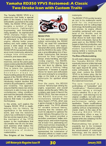 RD350  YPVS  restomod  a  true            traditional two-stroke engines. The       availability  of  aftermarket  parts,