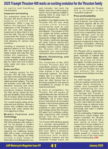 disc at the rear, complemented by         markets like Asia, where smaller          The 2025 Triumph Thruxton 400