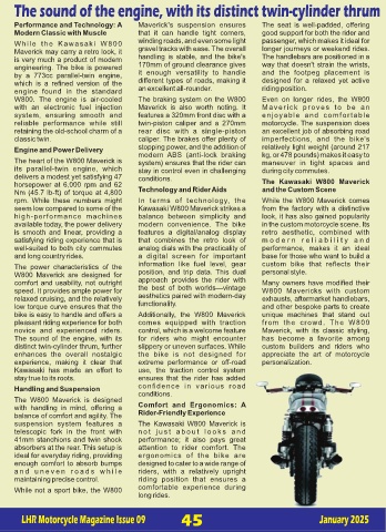bike is easy to handle and offers a Additionally, the W800 Maverick unique machines that stand out