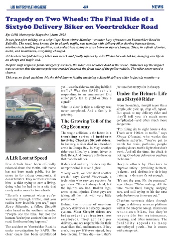 him—a rider trying to earn a living, gig riders. “It's not always fatal, but says Khaya. “We're rushing. All the