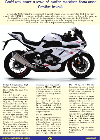 In mid-July 2025, Voge, the premium sub-brand of Loncin Motor Co., unveiled its striking new