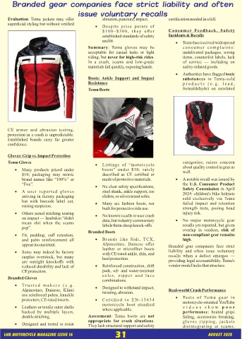 Alpinestars, Dainese, Klim) twisting, abrasion. Real-world Crash Performance
