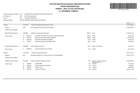 Program : 013.05.BF Program Penegakan dan Pelayanan Hukum 4.430.302.000