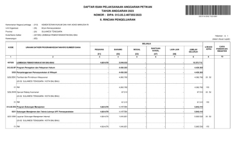 Kode/Nama Satker : (407355) LEMBAGA PEMASYARAKATAN BAU-BAU