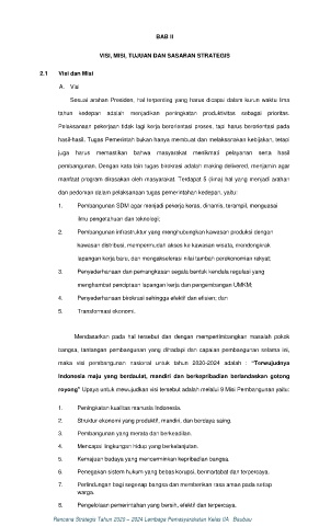 maka visi pembangunan nasional untuk tahun 2020-2024 adalah : “Terwujudnya