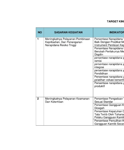 1 Meningkatnya Pelayanan Pembinaan Persentase Narapidana Yang Memperoleh Nilai 60% 65% 75% 88%