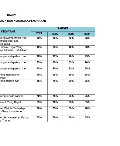 1 Meningkatnya Pelayanan Pembinaan Persentase Narapidana Yang Memperoleh Nilai 60% 65% 75% 88%