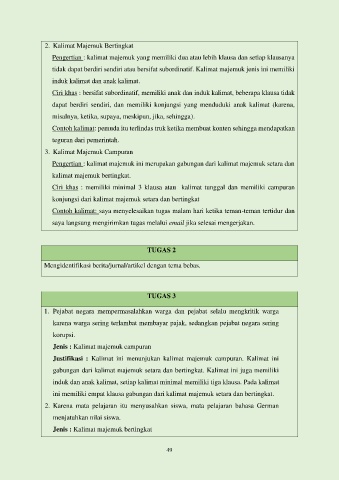 Ciri khas : memiliki minimal 3 klausa atau kalimat tunggal dan memiliki campuran
