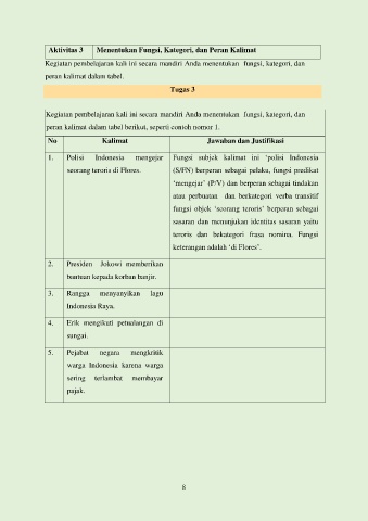 Aktivitas 3 Menentukan Fungsi, Kategori, dan Peran Kalimat