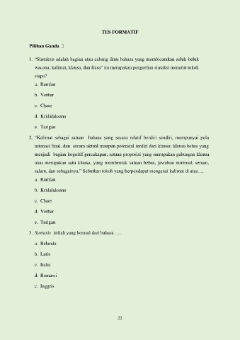 1. “Sintaksis adalah bagian atau cabang ilmu bahasa yang membicarakan seluk-beluk