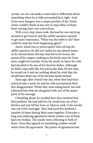 certain, no one can make a man believe differently about something when he is fully persuaded he is right. And, if two men disagree over a major portion of the Torah, Amos couldn’t think of any way to stop either of them from voicing their own convictions.