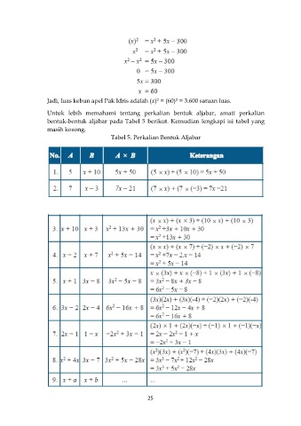 Tabel 5. Perkalian Bentuk Aljabar