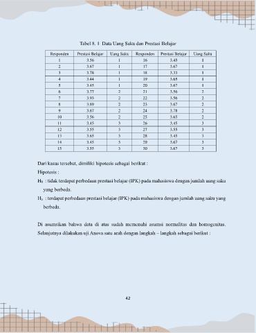 Tabel 8. 1 Data Uang Saku dan Prestasi Belajar