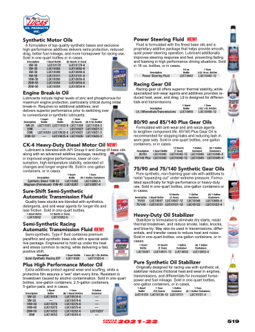 along with an advanced additive package, resulting in improved engine performance, lower oil con- sumption, high-temperature stability, extended oil changes and longer engine life. Sold in one-gallon containers, or in cases.