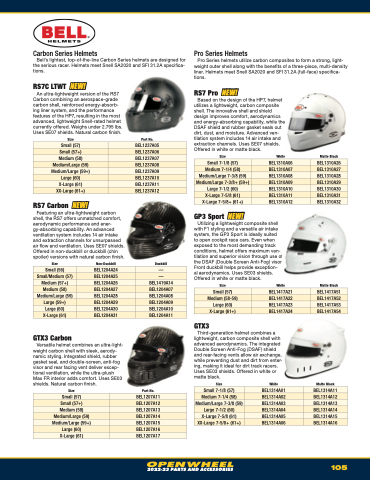 Bell's lightest, top-of-the-line Carbon Series helmets are designed for the serious racer. Helmets meet Snell SA2020 and SFI 31.2A specifica- tions.